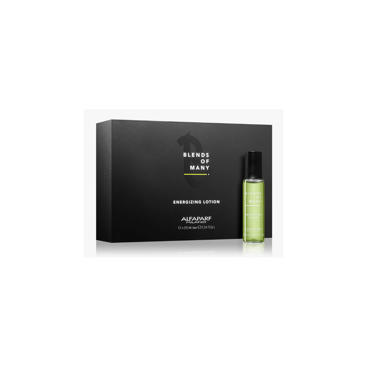 Die Blends of Many Energizing Lotion von Alfaparf Milano ist eine Intensivbehandlung, die speziell entwickelt wurde, um vorübergehenden Haarausfall bei Männern zu bekämpfen. Dank ihrer fortschrittlichen Formel mit Schwarztee-Extrakt und einem energiespendenden Komplex stimuliert sie die Kopfhaut und stärkt die Haarfaser, wodurch die Lebensdauer des Haares verlängert und die Haardichte verbessert wird.