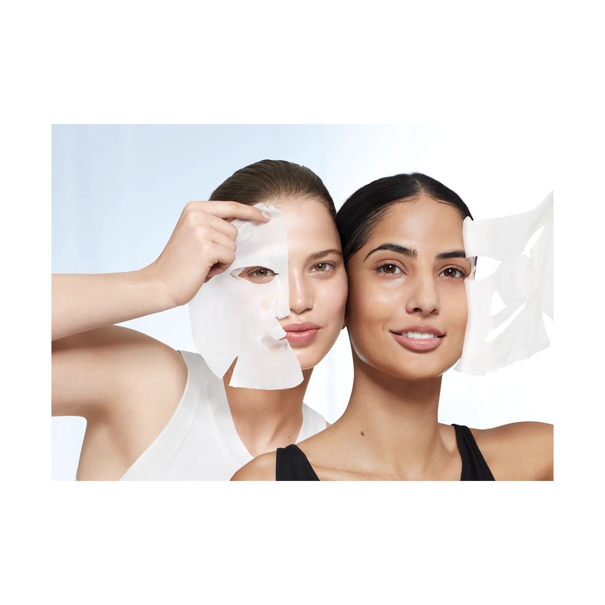 Öffne die Verpackung und entfalte die Maske. Lege sie sorgfältig auf das gereinigte Gesicht und passe sie den Konturen von Gesicht und Augen an.