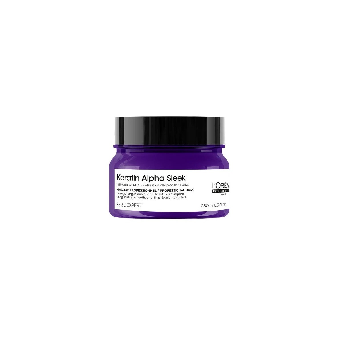 Die Keratin Alpha Sleek Maske von L’Oréal Professionnel ist eine intensive Pflegebehandlung, die entwickelt wurde, um Frizz zu kontrollieren und das Volumen von widerspenstigem Haar zu reduzieren.