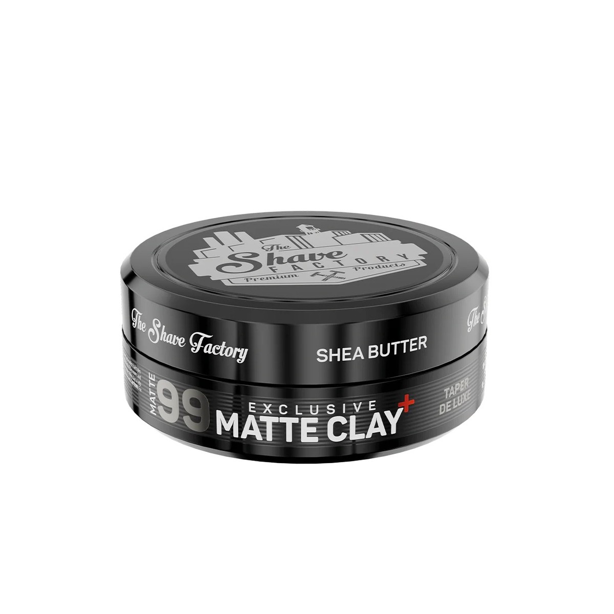 La Exclusive Matte Clay 99 Taper De Luxe di The Shave Factory è l’argilla ideale per chi desidera un look pulito, naturale e ben definito. Con la sua tenuta media e il finish opaco, è perfetta per tagli “taper” o sfumati, donando struttura e volume senza appesantire.