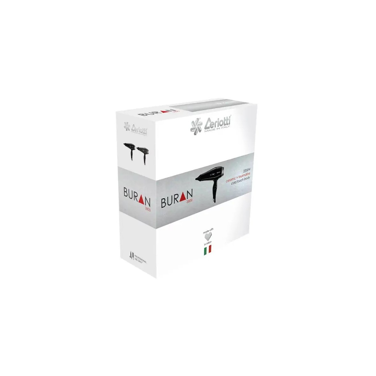 Grazie ad un motore di ultima generazione, silenzioso e performante, supportato da un flusso aerodimanico migliorato e dai benefici della tormalina rossa, l'asciugacapelli Buran Tourmaline 3800 rappresenta è già un best-seller tra i phon professionali della linea Ceriotti.