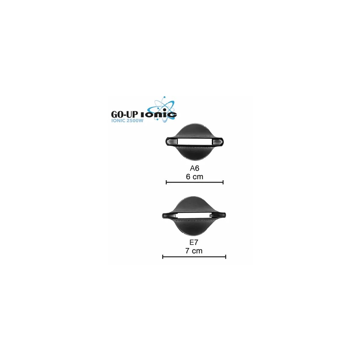 GO UP IONIC con 2 velocità, 4 temperature e colpo d’aria fredda è corredato con le nuove bocchette A6 larga 6 cm e E 7 ( extreme brushing) larga 7 cm con aggancio ad incastro e girevoli. Filtro inox posteriore rimovibile.