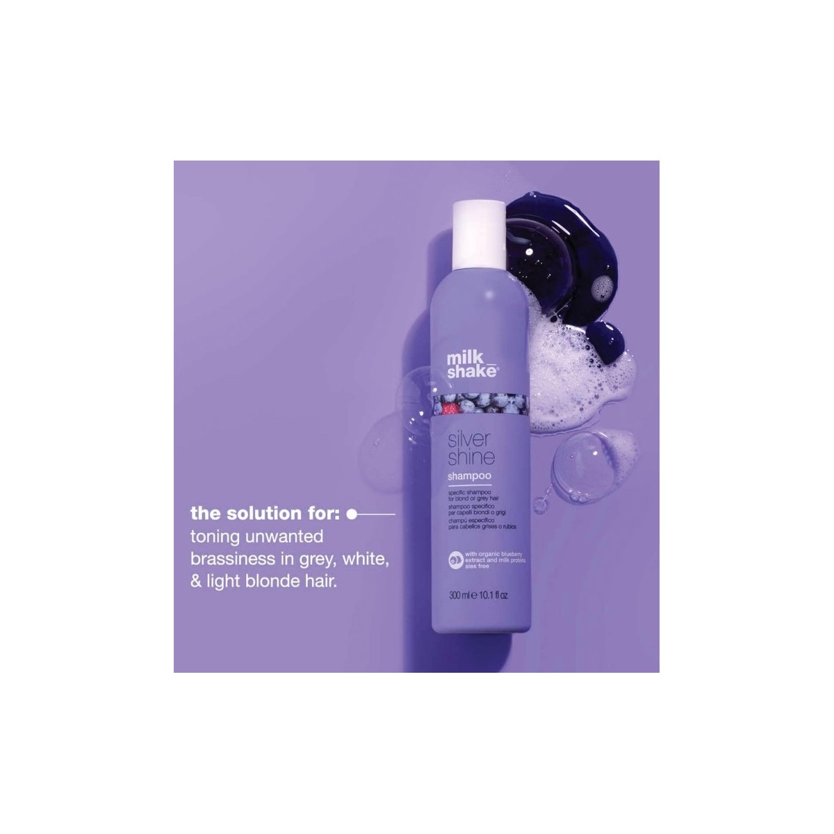 Milk Shake Silver Shine Shampoo è lo shampoo antigiallo ideale per capelli biondi, grigi o con mèches. La sua formula delicata, senza SLES, deterge con dolcezza eliminando impurità e residui, mentre i pigmenti viola neutralizzano i riflessi gialli indesiderati. Grazie agli estratti naturali e alle proteine del latte, i capelli risultano idratati, luminosi e con una tonalità fredda e intensa. Perfetto per mantenere il colore brillante e una chioma morbida e vitale.