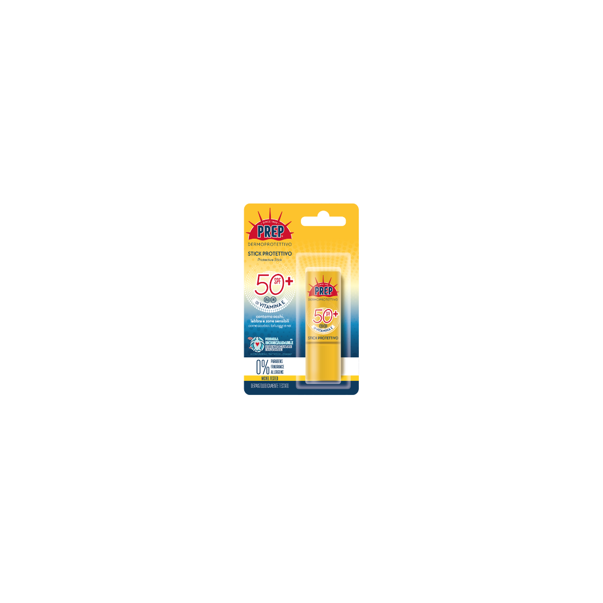 Prep Stick Protettivo SPF 50+ è uno stick solare ad alta protezione ideale per proteggere labbra e zone sensibili del viso.
