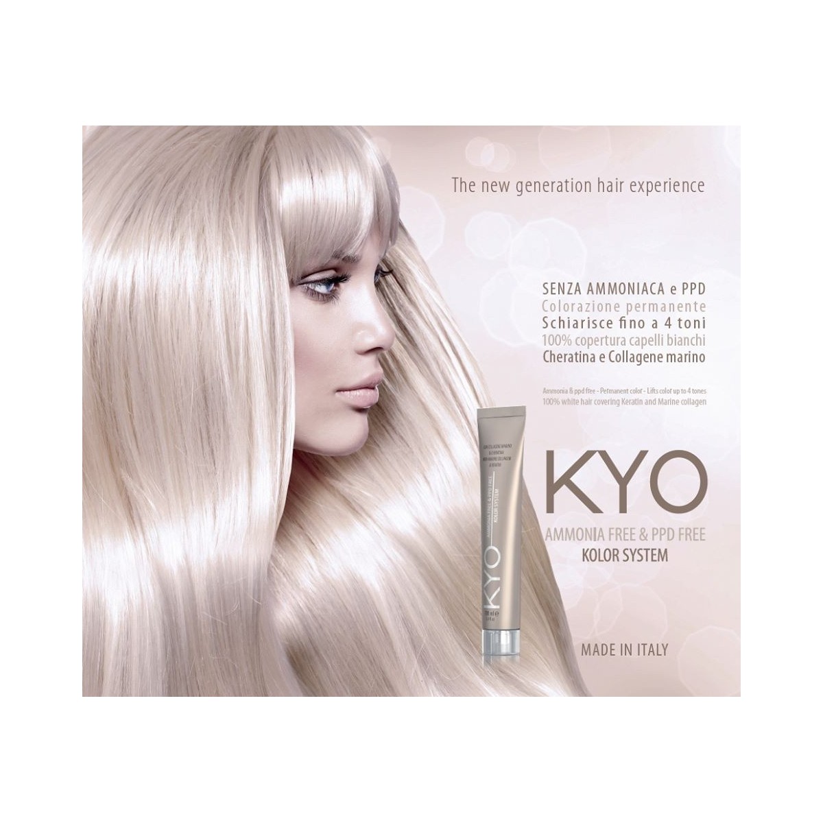 Kyo è il colore-trattamento di nuova generazione. Il colore per eccellenza. Grazie alla combinazione di collagene marino e cheratina e all’assenza di ammoniaca e parafenilendiammina, KYO KOLOR colora, protegge, nutre e ristruttura in un’unica fase. KYO è il colore permanente di nuova generazione.